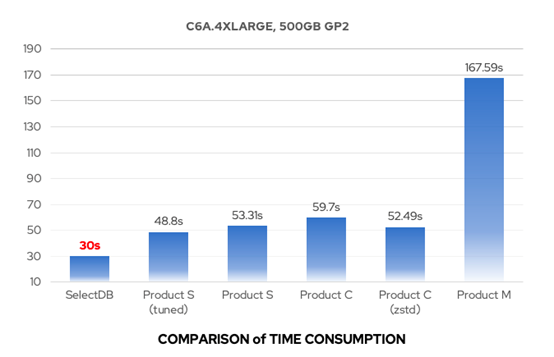 As far as query time consumption, compared with other top products, the overall query time consumption of SelectDB had decreased by 63%, 75%, 78%, 99% and 459% respectively, and its performance is significantly ahead of similar products.